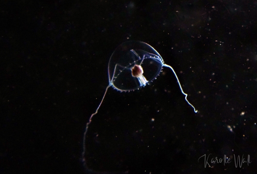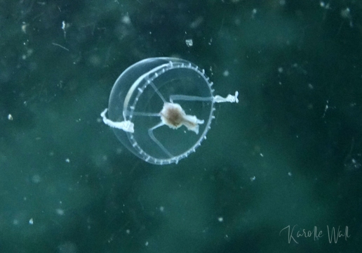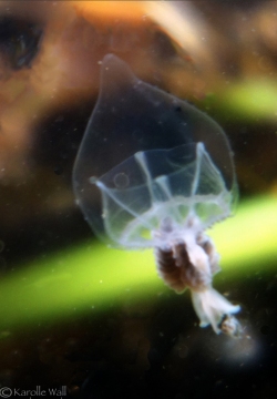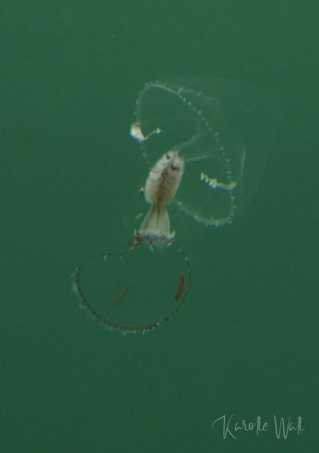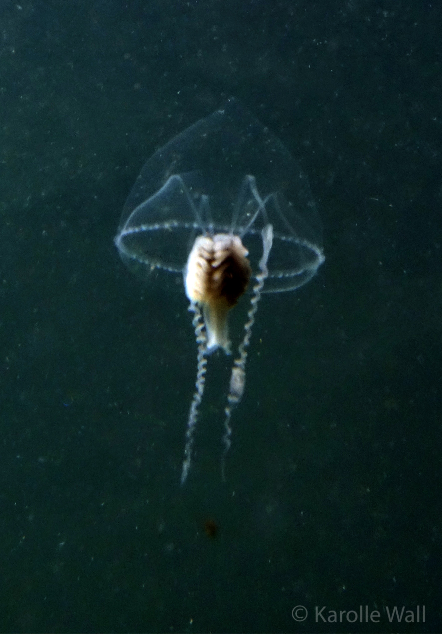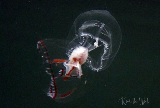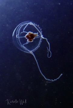 This jelly gets its common name for obvious reasons.  It wasn’t until I saw it in action, using its stomach as a kind of sucking vortex on a Clytia Gregaria (see photo in gallery) that I realized that its design made some sense.