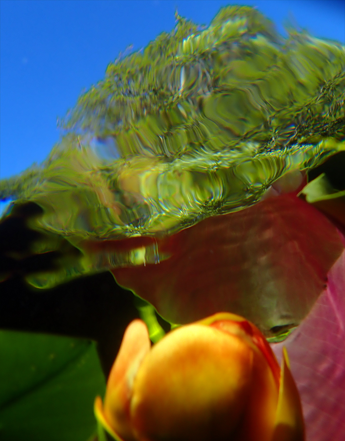 A fun photo shoot with somewhat cooperative subjects and ever-present antagonists: leeches, newts and giant water snails. Some acrobatics were required but it was such a joy to play in the warm(wish) water with colour and refractions, light and reflections.