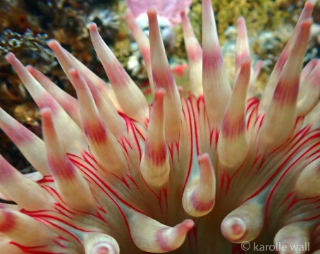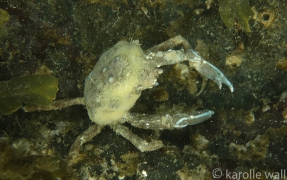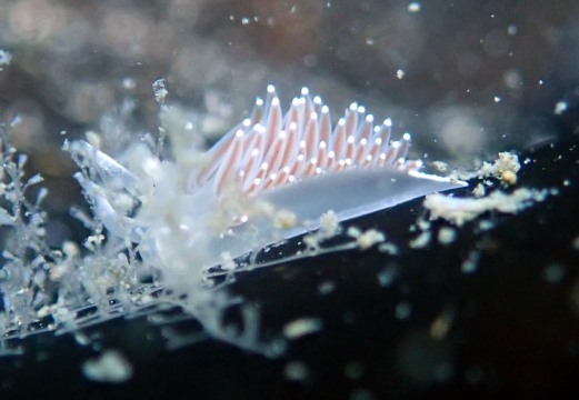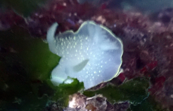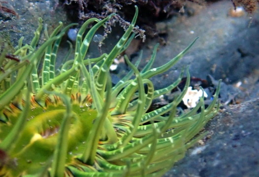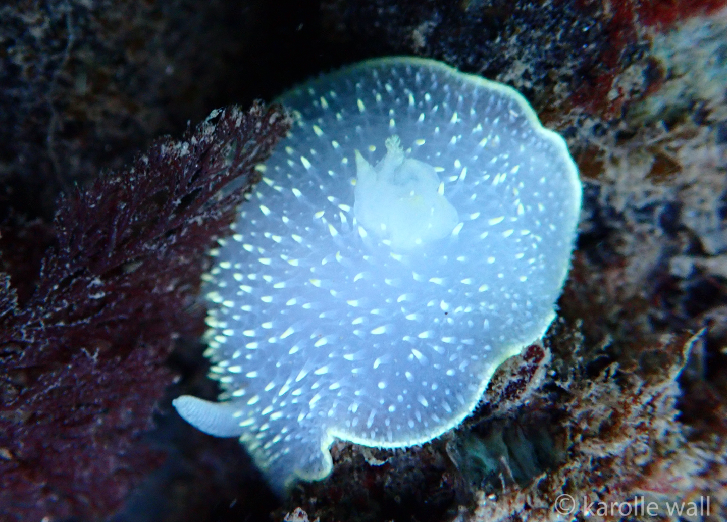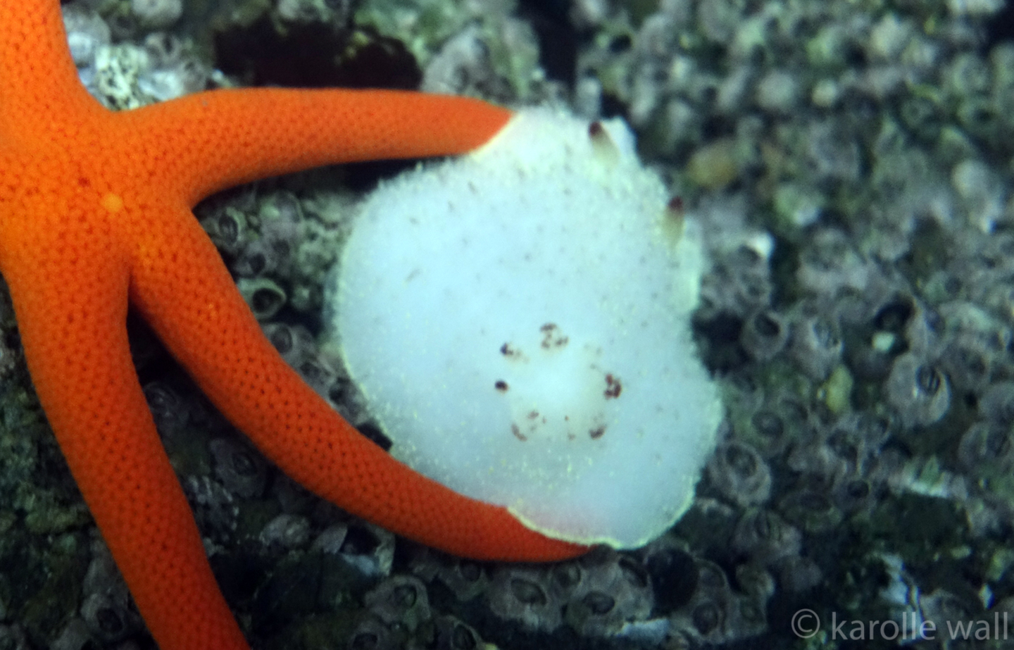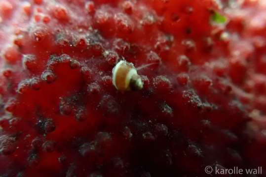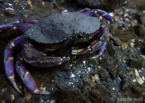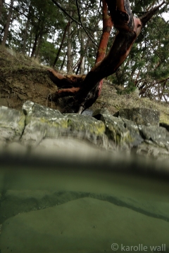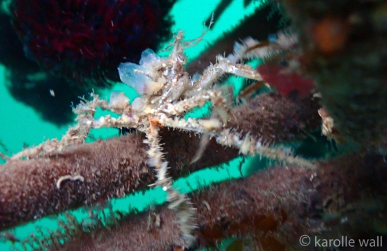 The water has been cold — between 6 & 8° C (43 to 47° F) but the purchase of a Yazbek 7.5 mm open cell wetsuit has made a huge difference to my ability to stay in winter waters.  Everyone always speaks of the beautiful clarity of the British Columbia ocean in the winter, but I have yet to see this.  Strong winds and fresh water run-off have created murky waters and low visibility.  The positive? When fresh water meets salt, it creates a turbulent, refractory effect and lightens the usual deep emerald waters to a lovely turquoise..  These photos were taken in four different areas off of S,dayes’ — Welcome Bay, Boat Nook, Peter Cove S., and McKinnon Road Beach.